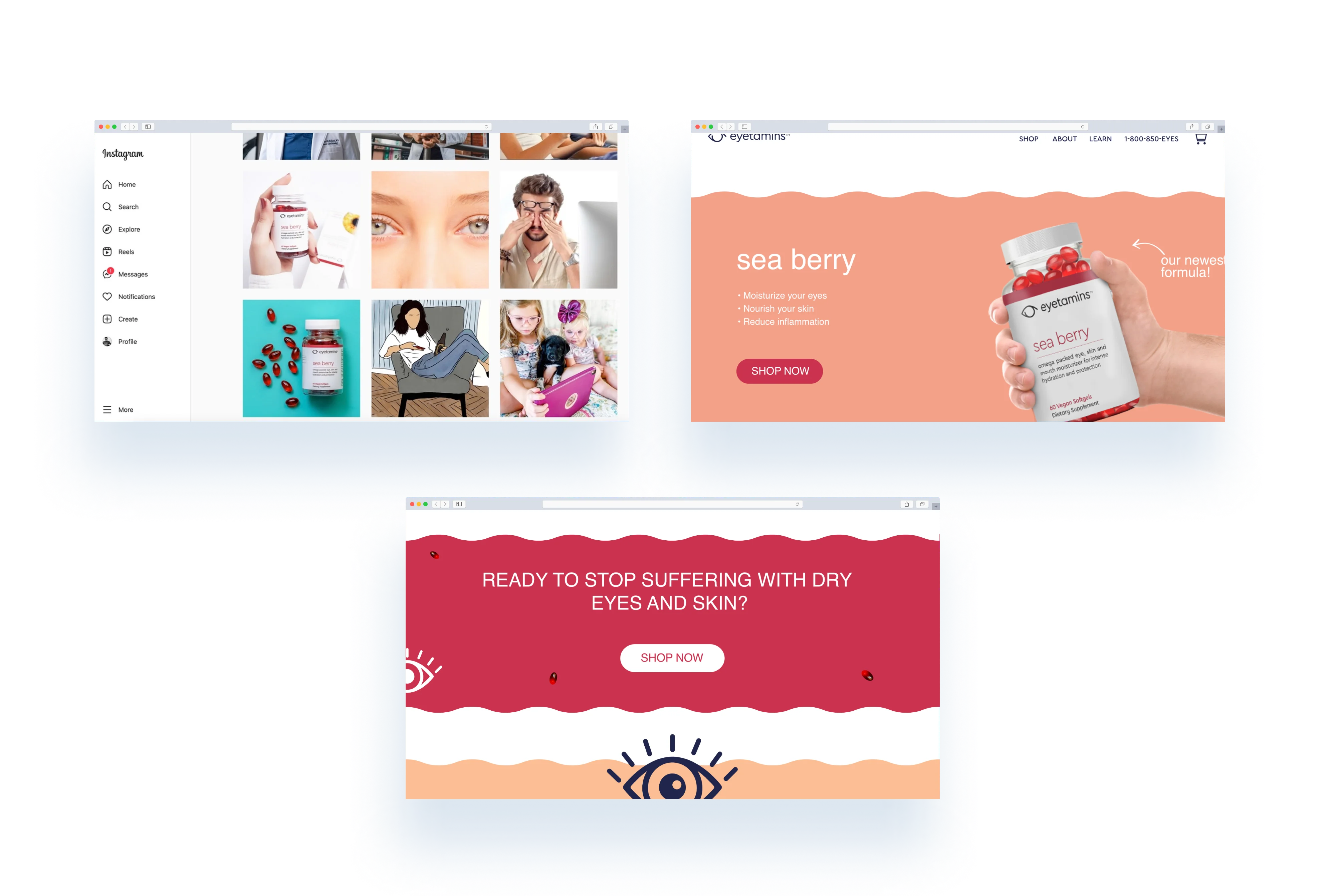 Eyetamins.co is an e-commerce website that sells eye health supplements. The company has reached out to me to make the website responsive, and help develop the brand identity with a consistent brand messaging and visual identity.